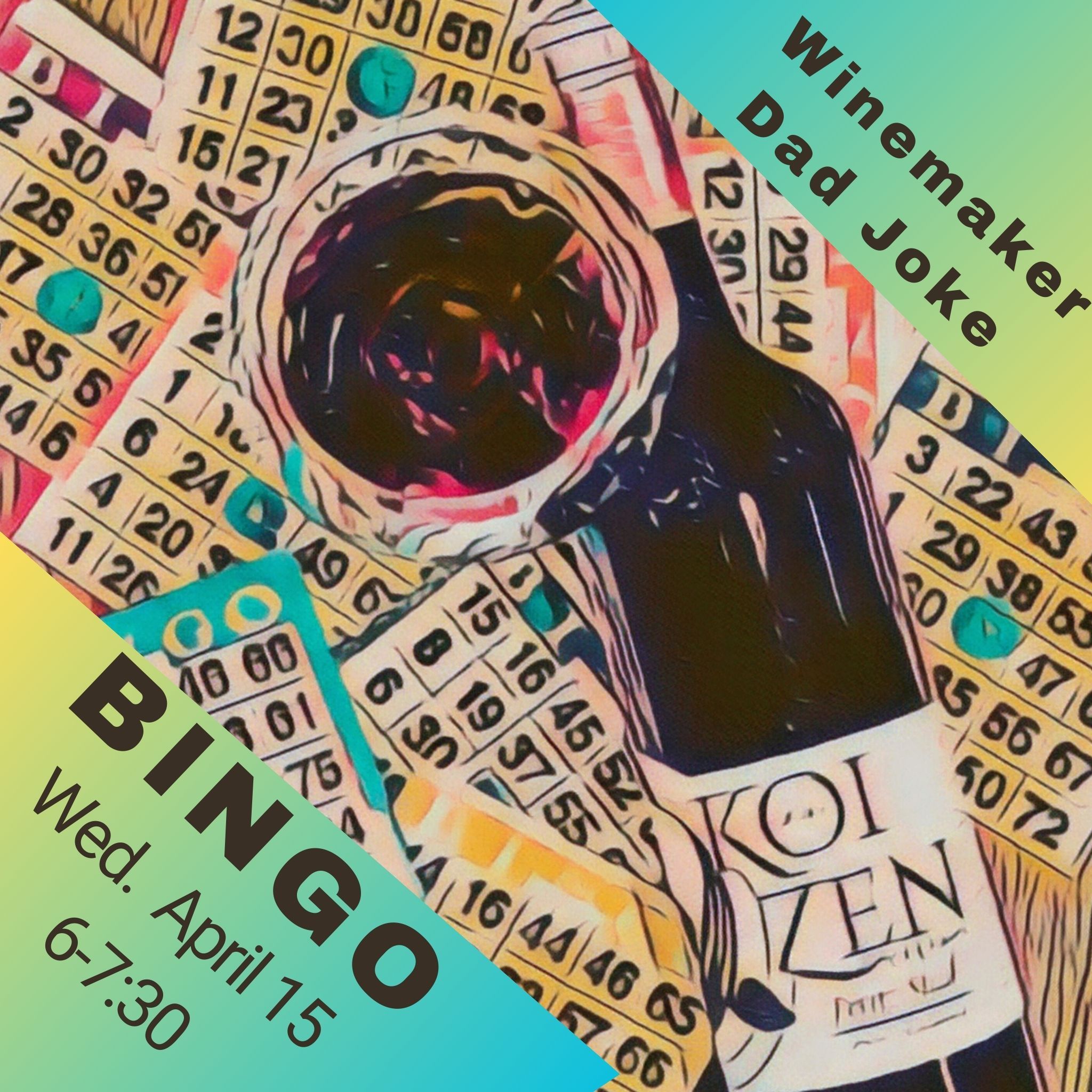 « All Events BINGO w/ Winemaker April 15 April 15 @ 6:00 pm Free « Member Spring Party and Wine Release 3D’s Blues Band Apr 25 » ~~ RESERVE YOUR SEATS ~~ Add to calendar Google Calendar iCalendar Outlook 365 Outlook Live Details Date: April 15 Time: 6:00 pm Cost: Free Website: https://koizencellars.com/product/bingo-w-winemaker-april-15