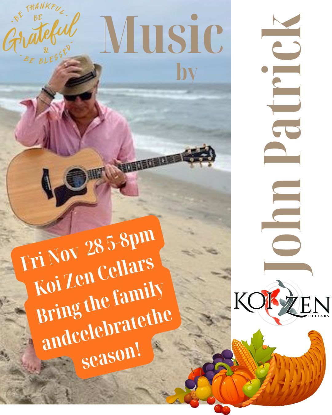 John’s amazing guitar skills and lively classic tunes always get the crowd singing along. Kick back, sip some wine, and soak in the good vibes this holiday weekend at Koi Zen!